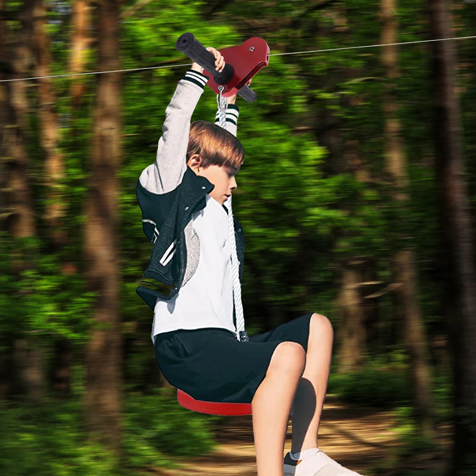 160FT Zipline Set with Stainless Steel Spring Brake & Seat for Exciting Outdoor Adventures Camping Tools Hiking Accessories
