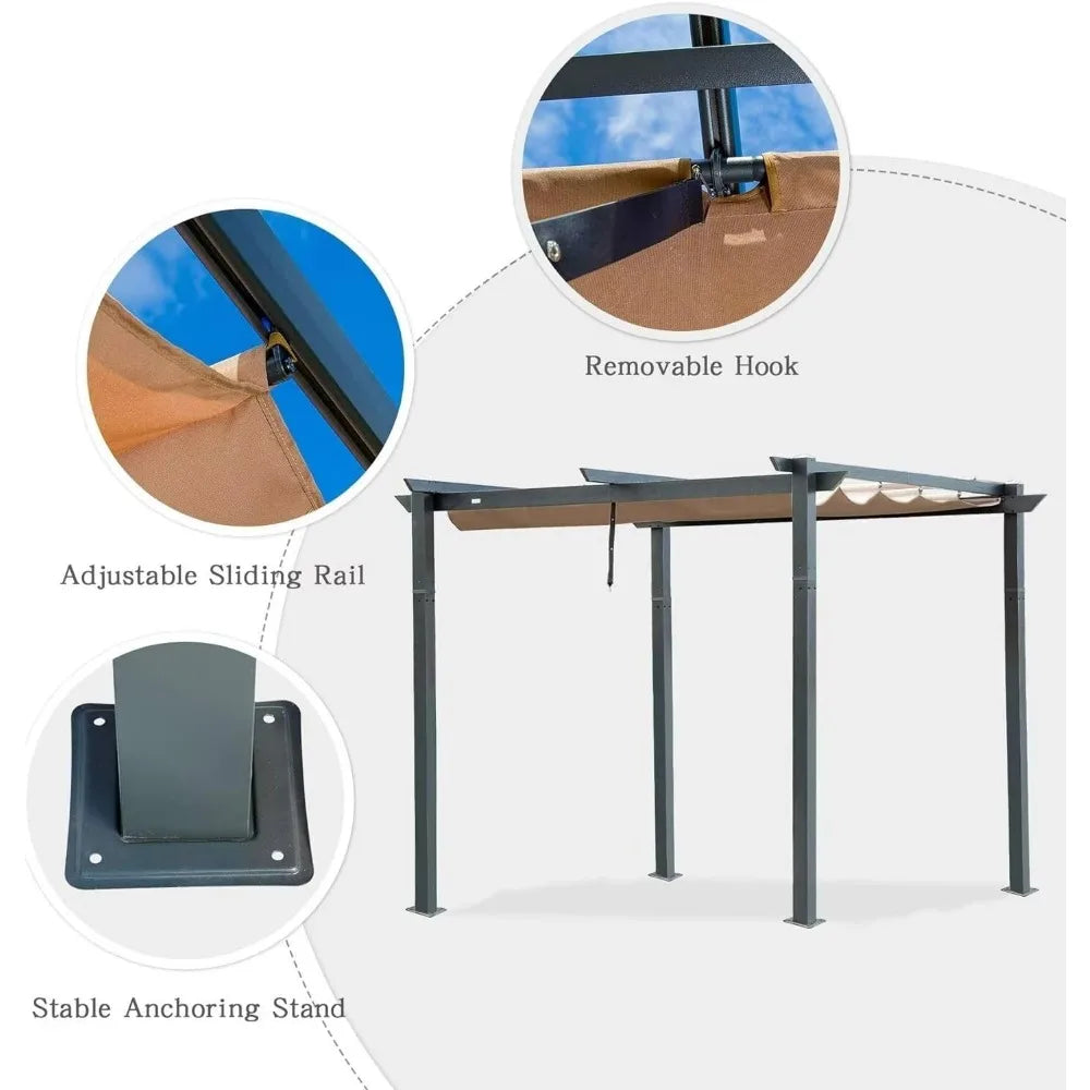 Domi Outdoor Living 10 X 10 Outdoor Retractable Pergola with Weather Resistant Canopy Aluminum Garden Patio Grill Gazebo