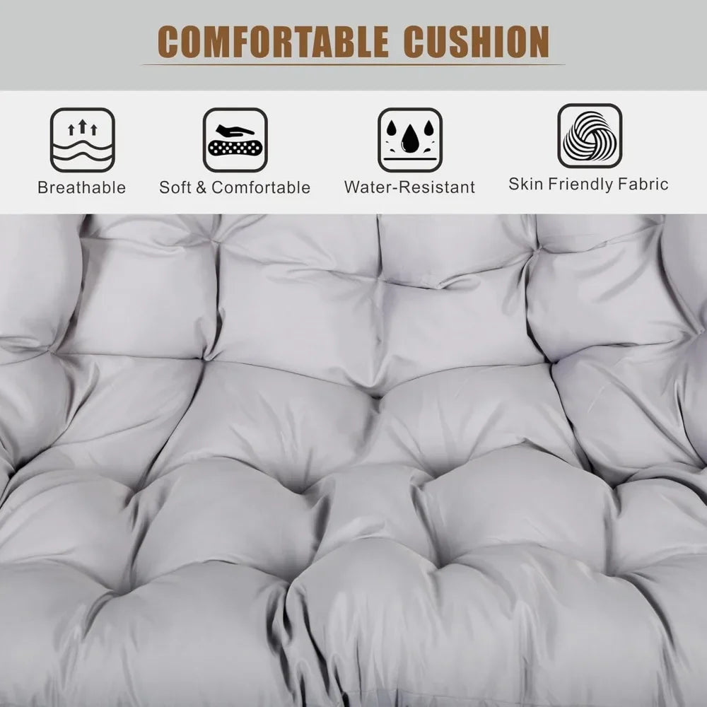 Double Hanging Egg Chair with Stand Patio Hammock Swing Chair Cushion Loveseat for Bedroom Balcony Garden Indoor Use