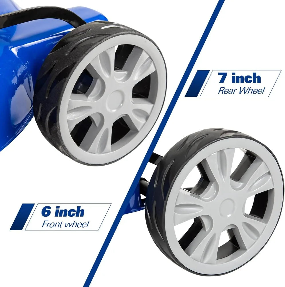 - Mowing Convenience: Experience smooth mobility with 7” rear and 6” front double ball-bearing wheels. The comfortable foam-wrapped angled grip reduces strain during extended use.