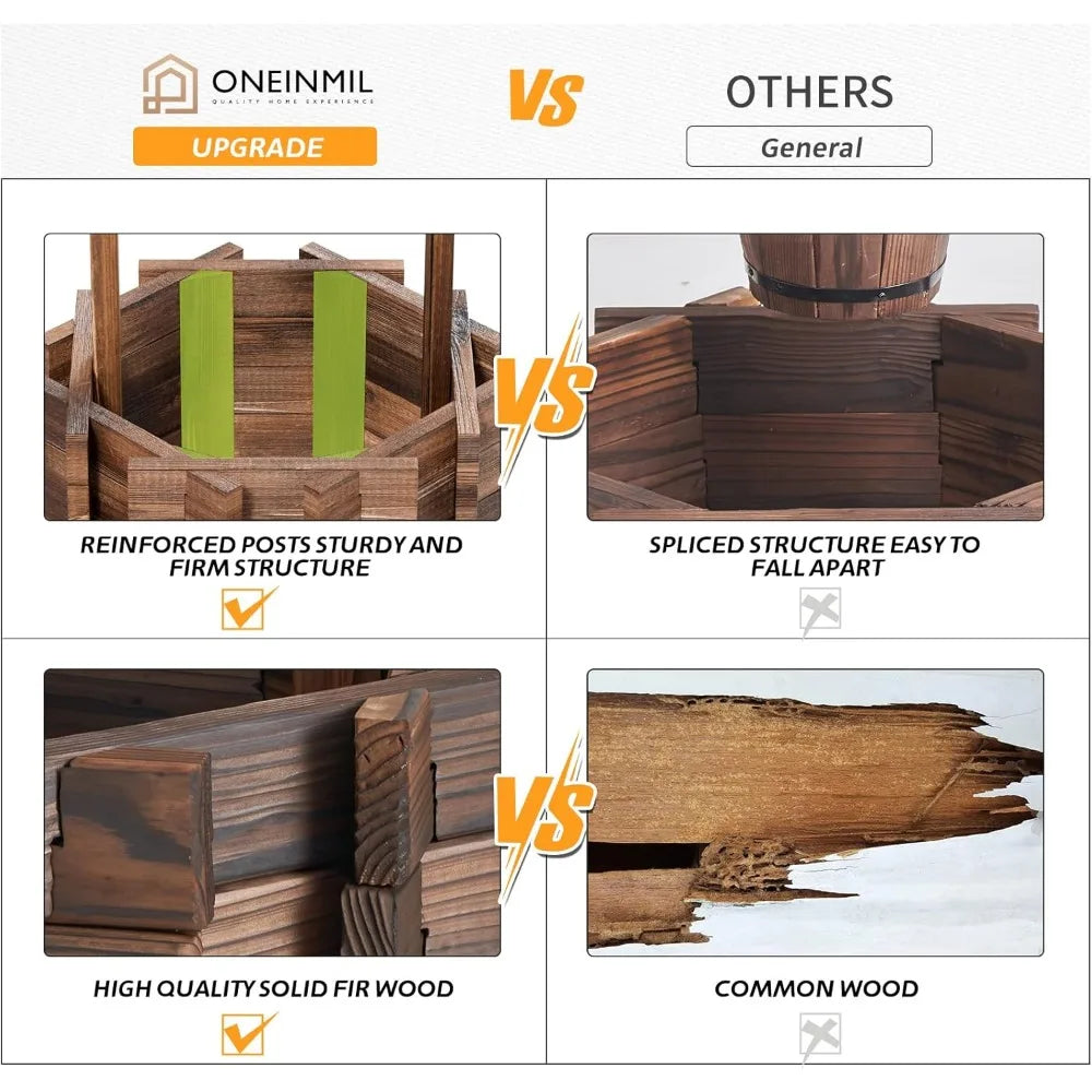 Transform your outdoor space with the oneinmil Outdoor Wooden Wishing Well Planter, an exquisite blend of functionality and charm. Crafted from high-quality fir, this rustic planter stands at an impressive 25.6 inches, making it a striking focal point for your patio, garden, or yard.